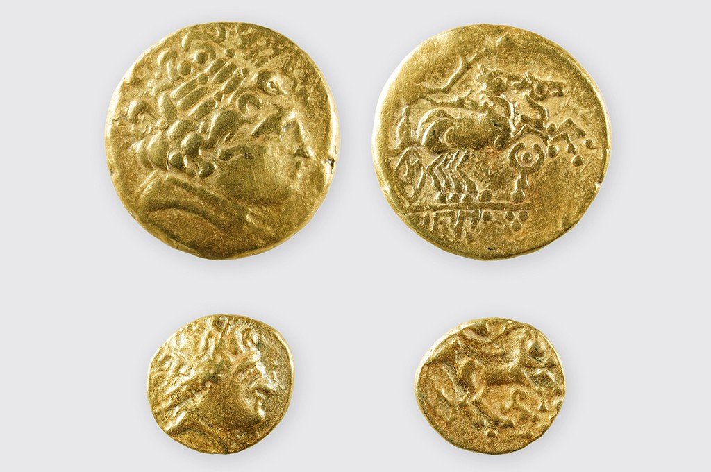 Altın paraların üzerinde Apollo tasviri ile iki atlı araba figürü yer alıyor. Bu betimlemeler, Keltlerin yalnızca kendi yerel gelenekleriyle sınırlı kalmadığını, Yunan dünyasıyla kültürel temas içinde olduğunu gösteriyor. Özellikle Apollo figürü, Akdeniz kökenli inanç ve sembollerin Orta Avrupa’ya kadar ulaştığını ortaya koyması bakımından önem taşıyor. İki atlı araba motifi ise güç, hareket ve kutsal yolculuk gibi kavramlarla ilişkilendirilebilecek sembolik bir anlatım sunuyor.